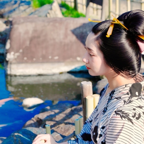 日本でも数少ない髪結師が、本格的に地毛で日本髪を結い上げます。江戸時代から続く伝統技術の日本髪を結って自由気ままにぶらり町歩き・・。しゃらりしゃらりとお買い物したり観光名所を巡ったり、気分はまるで江戸人のよう・・。日本髪を結ってお好きな時間を過ごしていただける体験となっております。