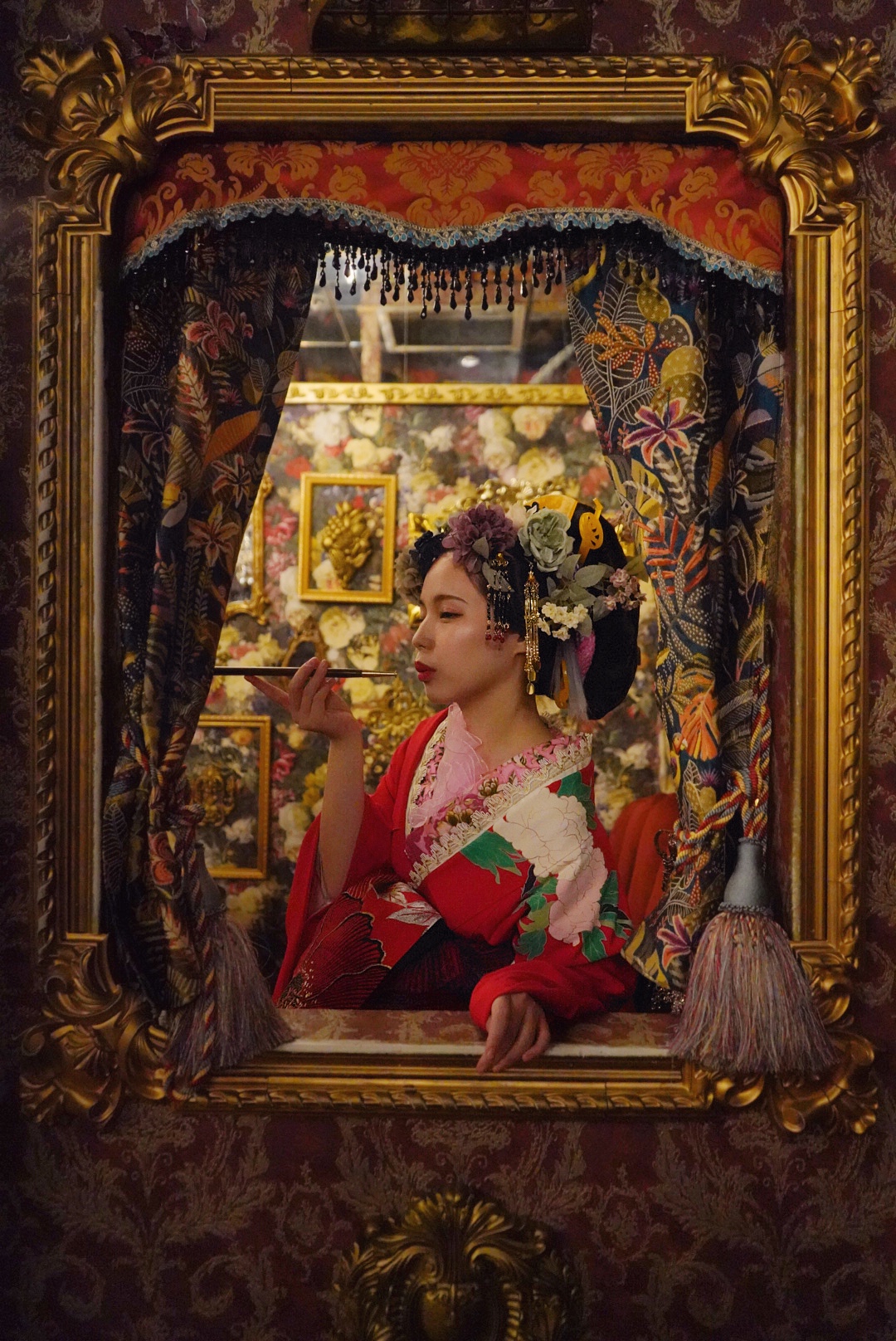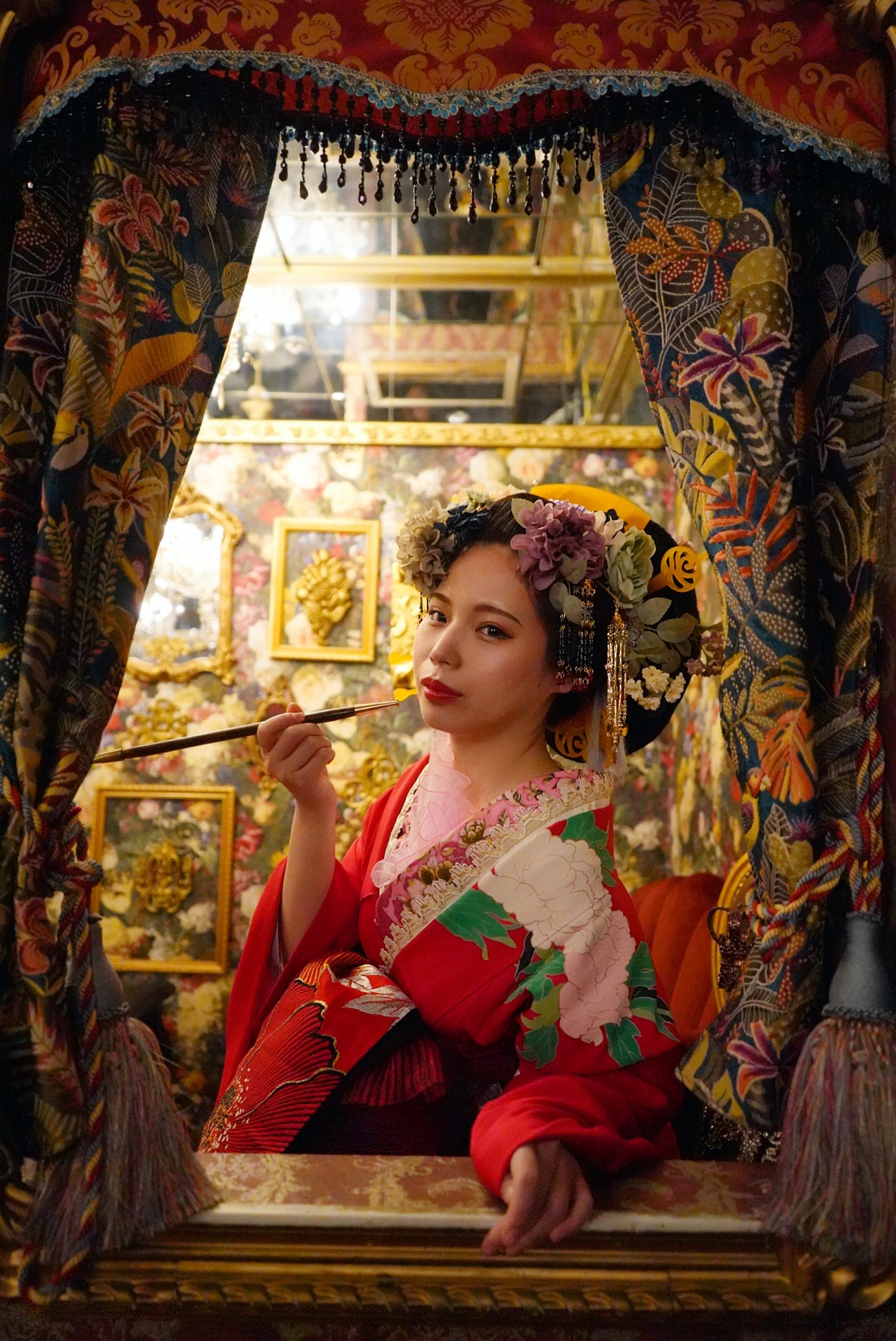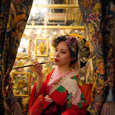 華やかな着物を着て、極彩色の近隣スタジオで撮影する非日常の特別な花魁体験をしてみませんか。