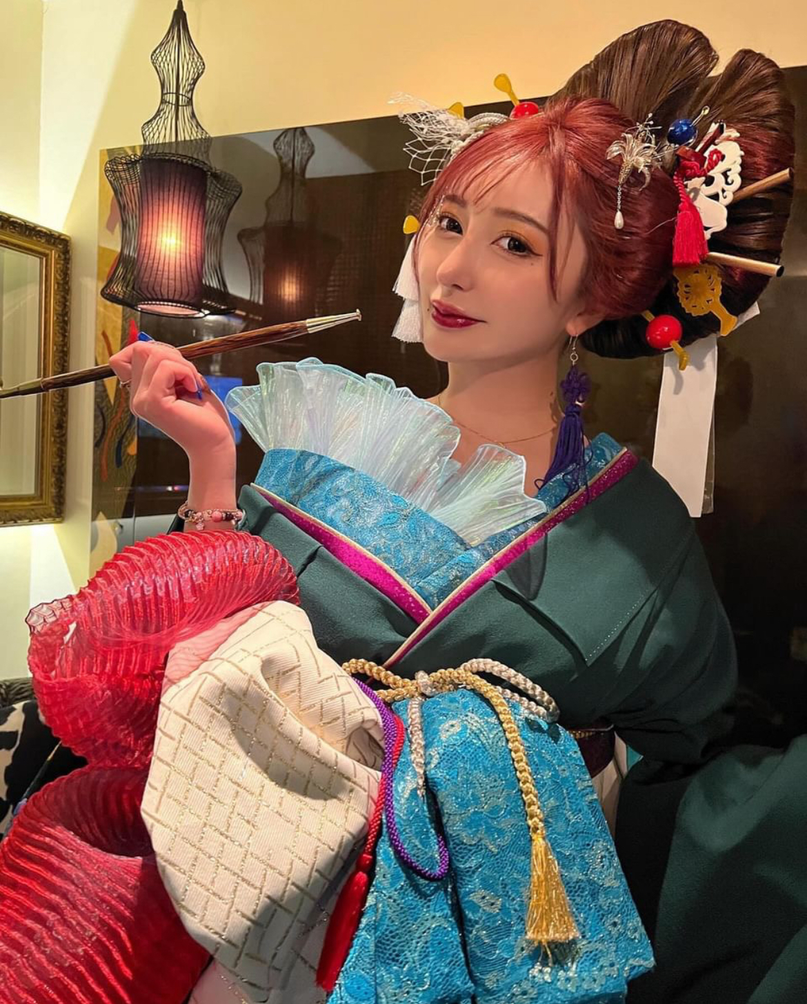 アニメの世界のような華やかな花魁体験。ヘアセット・メイク・お着付け 全てが含まれている撮影プランです。